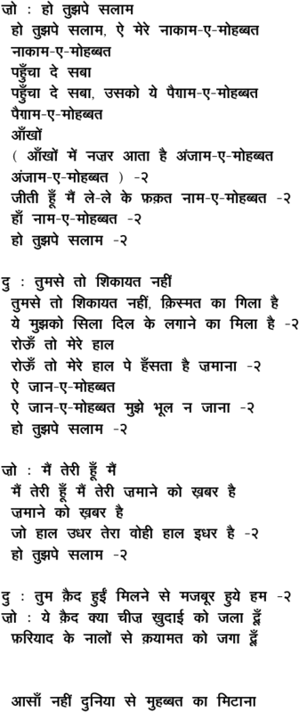 ho tujhape salaam, ai mere naakaam\-e\-mohabbat
