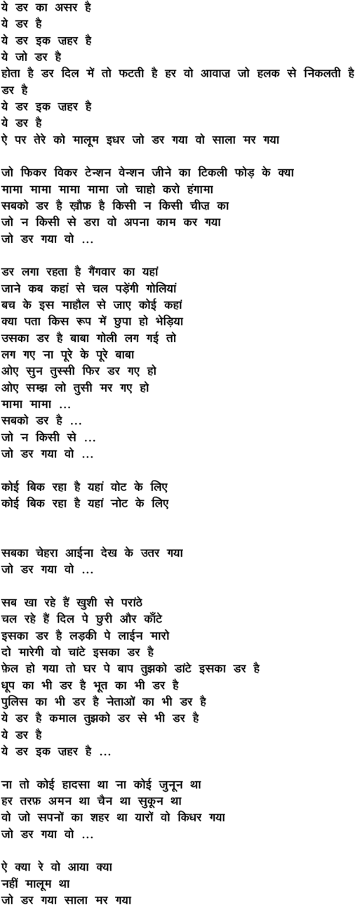 jo Dar gayaa vo mar gayaa