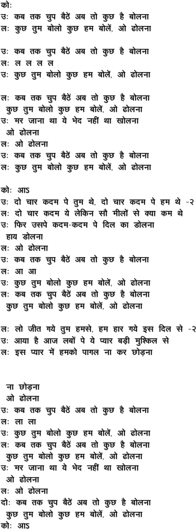 kab tak chup baiThe.n ab to kuchh hai bolanaa ... o Dholanaa