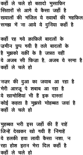 kahaa.N le chale ho bataado musaafir