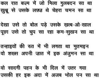 kal raat bazm me.n jo milaa gulabadan saa thaa