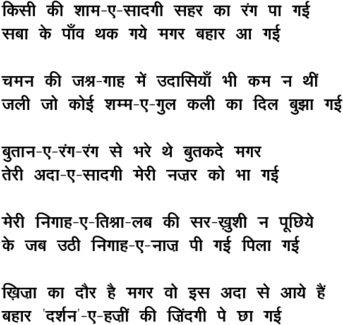 kisii kii shaam\-e\-saadagii sahar kaa ra.ng paa ga_ii