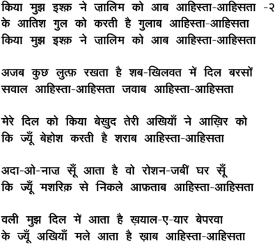 kiyaa mujh ishq ne zaalim ko aab aahistaa\-aahisataa