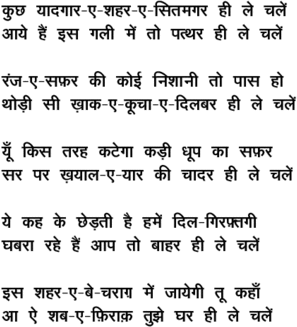 kuchh yaadagaar\-e\-shahar\-e\-sitamagar hii le chale.n
