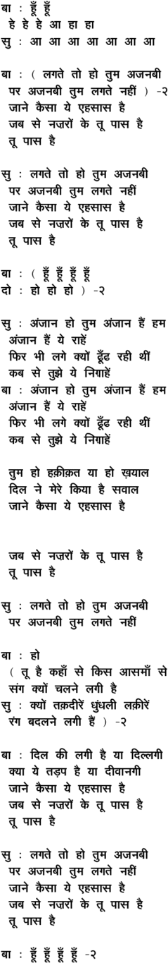 lagate to ho tum ajanabii par ajanabii tum lagate nahii.n