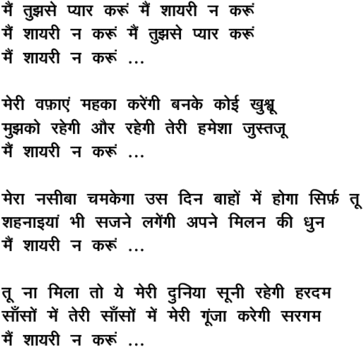 mai.n tujhase pyaar karuu.n mai.n shaayarii na karuu.n