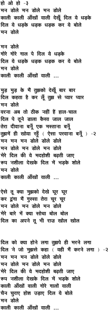 man Dole ... kaalii kaalii aa.Nkho.n vaalii dekhuu.N