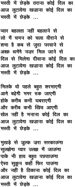 mastii me.n chhe.D ke taraanaa koii dil kaa