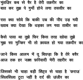 mu.ntazir kab se Gair hai terii taqariir kaa - - Ghulam Ali