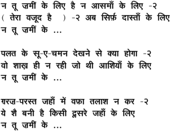 na tuu zamii.n ke li_e hai na aasamaa.N ke li_e