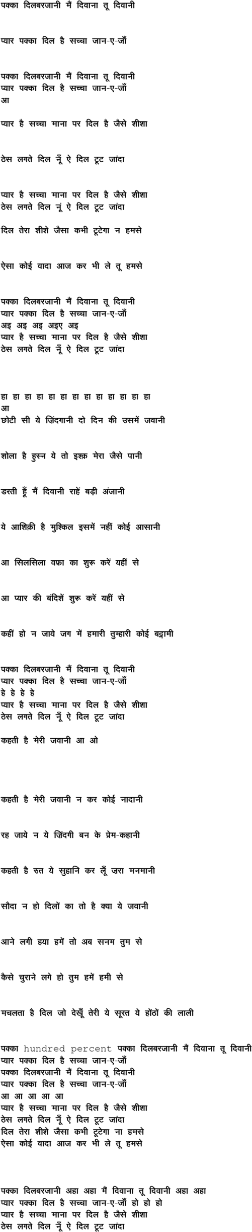 pakkaa dilabarajaanii mai.n divaanaa tuu divaanii