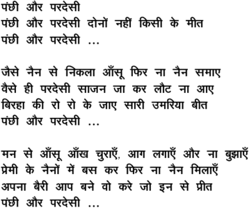 pa.nchhii aur paradesii dono.n nahii.n kisii ke miit