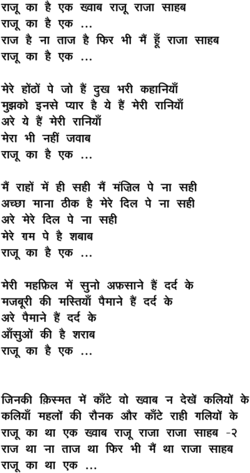raajuu kaa hai ek Kvaab raajuu raajaa saahab
