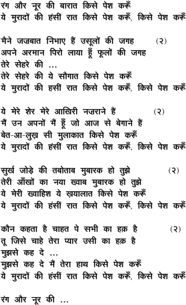 ra.ng aur nuur kii baaraat kise pesh karuu.N