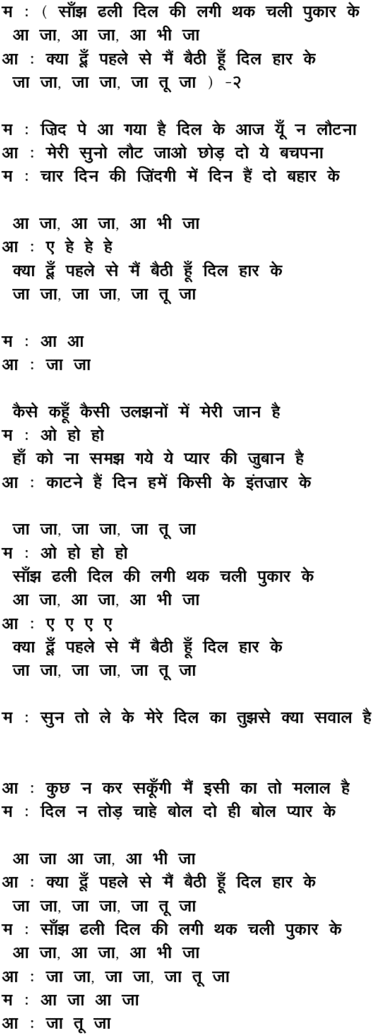 saa.Njh Dhalii dil kii lagii thak chalii pukaar ke