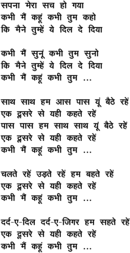 sapanaa meraa sach ho gayaa ... kabhii mai.n kahuu.n kabhii tum kaho