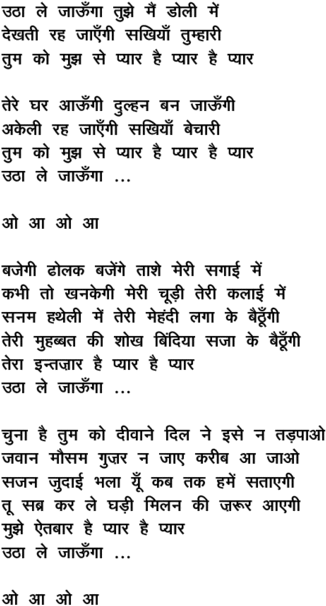 uThaa le jaa_uu.Ngaa tujhe mai.n Dolii me.n