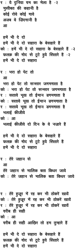 ye duniyaa Gam kaa ... hame.n bhii de do sahaaraa